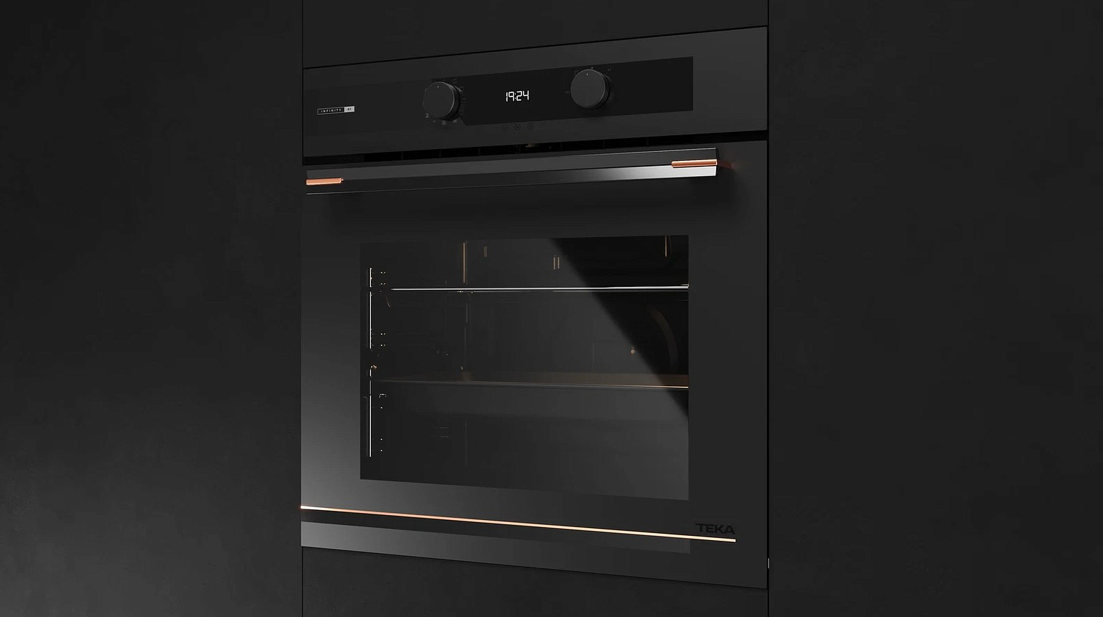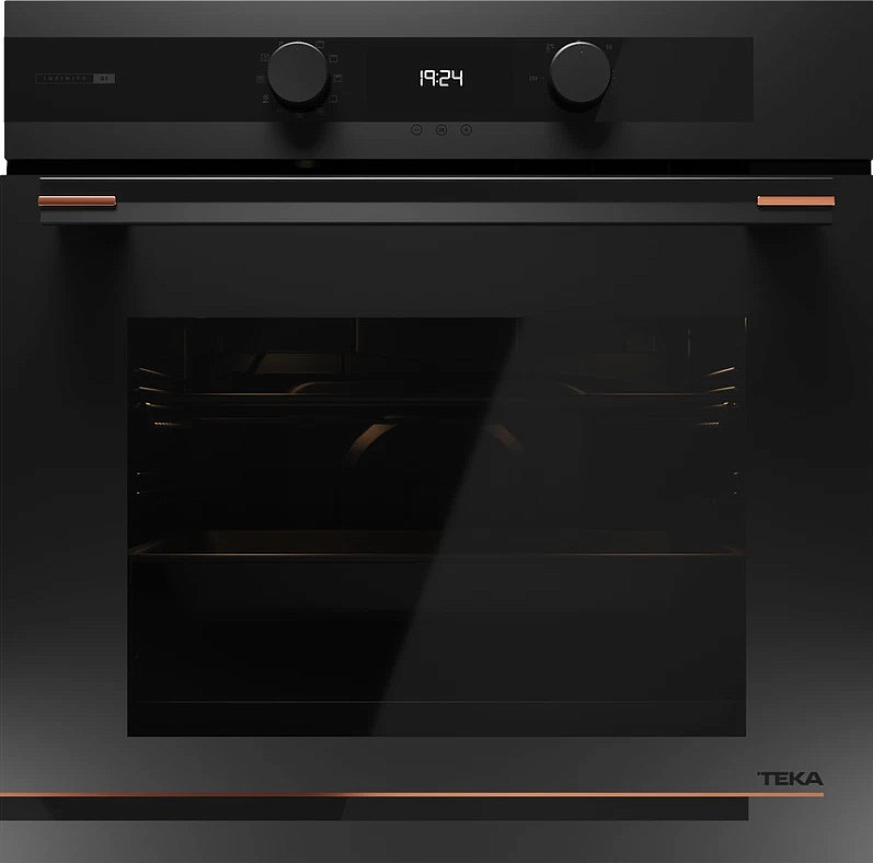 Матовый черный цвет корпуса и медная фурнитура создают стильный и современный облик, который украсит любую кухню. Панель управления выполнена из стекла, что обеспечивает ее долговечность и простоту в уходе. Прибор оснащен сенсорными поворотными переключателями и TFT дисплеем, что обеспечивает удобство и интуитивность управления.