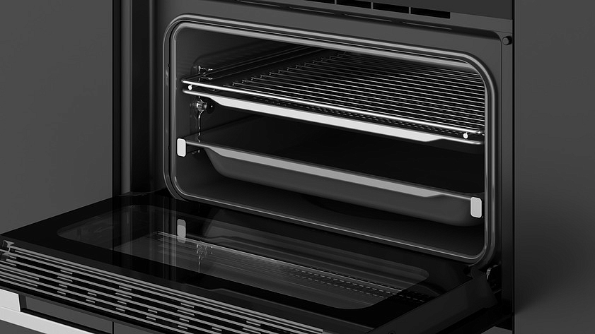 Благодаря телескопическим направляющим можно легко и безопасно выдвигать противень полностью или частично для проверки состояния блюда или добавления в него новых ингредиентов. Направляющие легко удержат его на весу, освободив вам руки и не позволяя противню упасть.