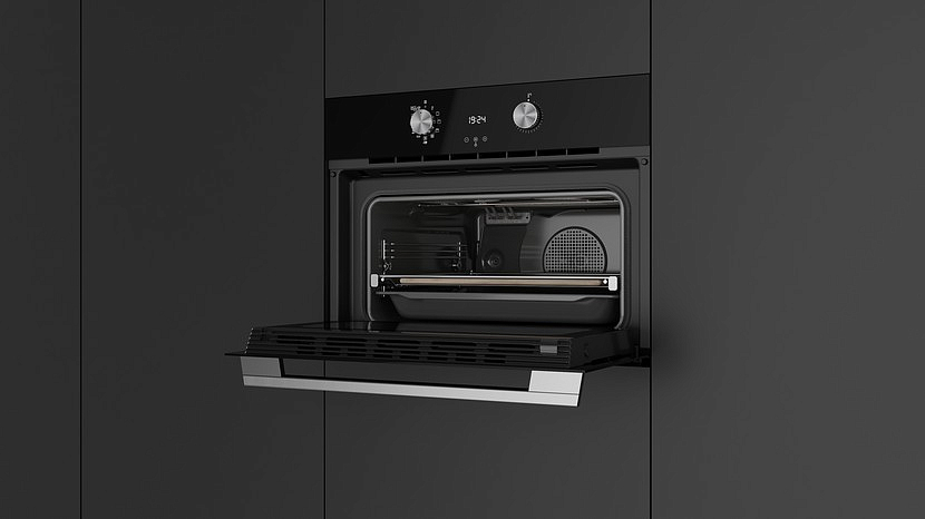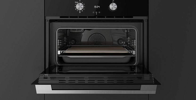 Благодаря вентилятору тепло быстро и равномерно распределяется по всему объему внутренней камеры, воздействуя не на противень, а непосредственно на запекаемое блюдо. С помощью турборежима можно готовить на нескольких уровнях одновременно, ведь температура на каждом из них будет одинаковой.