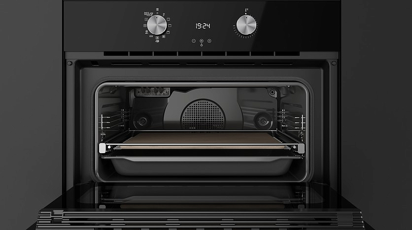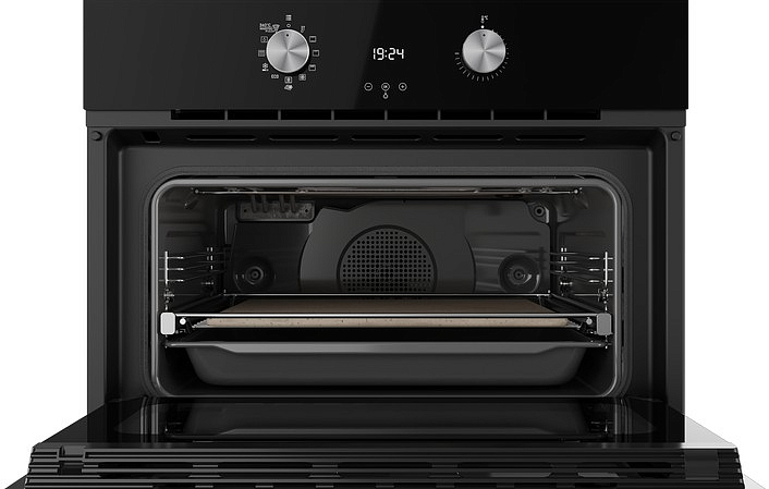 Одновременная работа верхнего, нижнего и кольцевого нагревательного элемента с вентилятором помогают добиться полностью равномерного распределения тепла в духовом шкафу, ускоряет приготовление и способствует пропеканию со всех сторон даже крупных блюд, таких как, например, пирог с начинкой, а также позволяет готовить на нескольких уровнях одновременно.