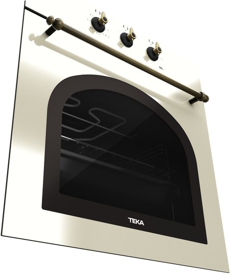Мультифункциональный духовой шкаф Teka HRB 6100 VNB BRASS из коллекции WISH COUNTRY выполнен в цвете «ванильная эмаль» и имеет фурнитуру под состаренную бронзу. Простое управление режимами, температурой и временем работы обеспечивает аналоговый программатор.