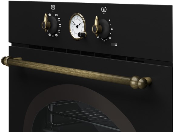 Мультифункциональный духовой шкаф Teka HRB 6300 ATB BRASS коллекции WISH COUNTRY выполнен в цвете «антрацитовая эмаль» с фурнитурой под состаренную бронзу. У модели 9 режимов работы, включая режим «Турбо» и «Макси-гриль». За очистку прибора отвечает технология HydroClean PRO, позволяющая произвести уборку за 24 минуты. Внутренняя поверхность дверцы выполнена из закалённого стекла.
