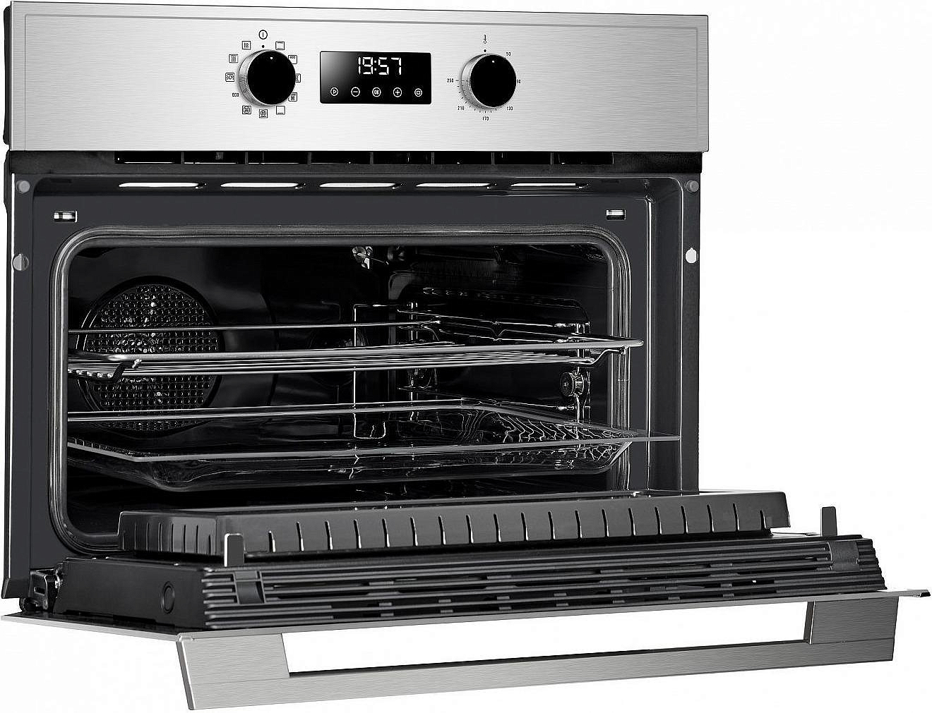Компактные размеры духовки (45.5×59.5×55.9 см) позволяют встроить ее даже в небольшую кухню, при этом объем камеры составляет 40 литров, что достаточно для приготовления большинства блюд. Инновационное внутреннее покрытие Slippery обеспечивает легкую очистку техники, а также равномерное распределение тепла по всей ее поверхности.