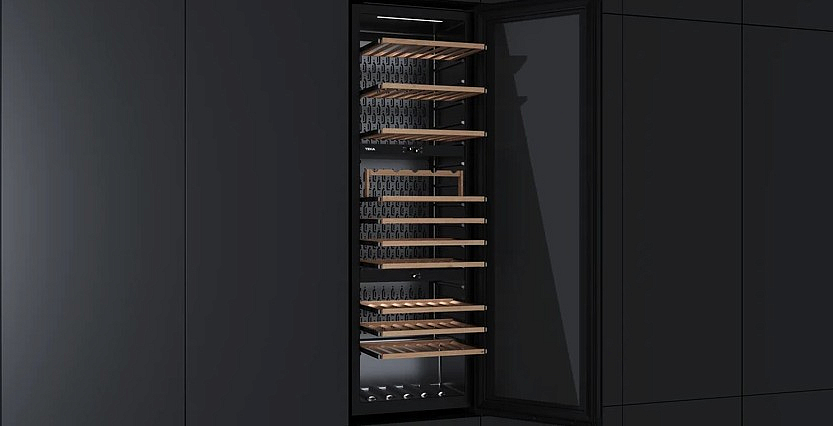 Деревянные полки в винных шкафах обычно изготавливаются из дуба или других ценных пород древесины. Они не только удобны и выглядят благородно, но и позволяют правильно хранить бутылки. Также полки оснащены телескопическими направляющими, чтобы было проще укладывать и доставать напитки.
