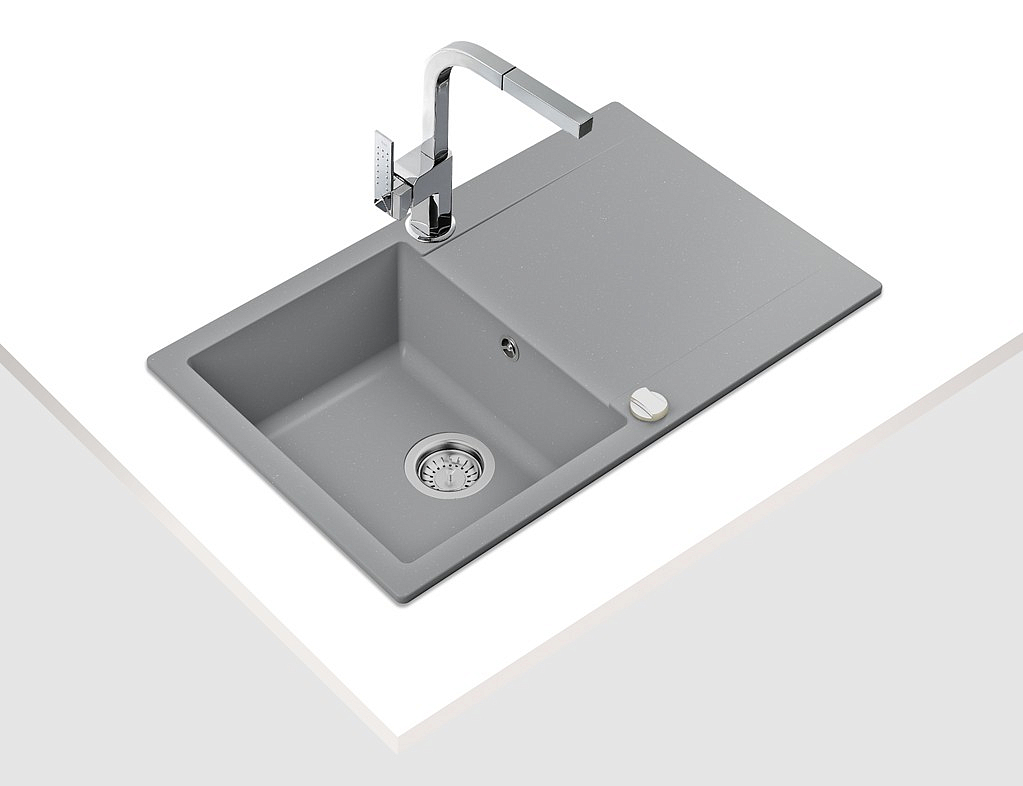 - Элегантный серый металлик и реверсивный монтаж для гибкости в дизайне кухни.