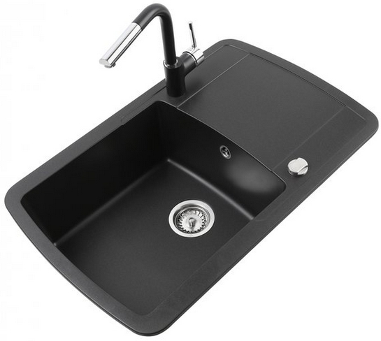Данная модель выполнена из прочного жаростойкого искусственного композитного камня — тегранита. Он обладает большим списком преимуществ, среди которых: устойчивость к царапинам и повреждениями, термоустойчивость (до 280 градусов Цельсия), легкость в очистке, стойкость к влиянию пищевых кислот, красителей и ультрафиолета. Вы можете не сомневаться, этот материал гарантирует не только максимально долгую, но и безопасную эксплуатацию. Можно спокойно складывать на мойку посуду и пищевые продукты — в состав композита входят ионы серебра, имеющие антибактериальные свойства.