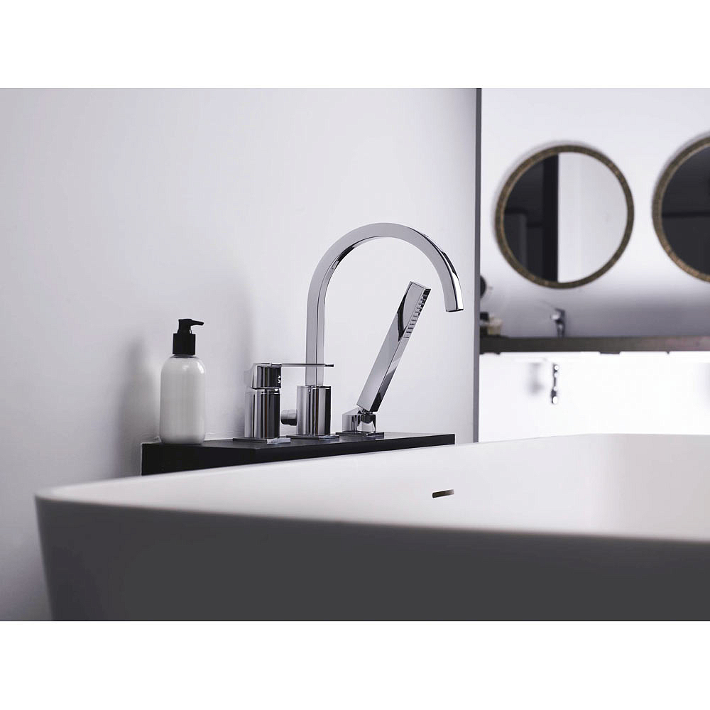 Бортовой смеситель для ванны Cuadro состоит из трех элементов: рычага, излива и душа. Скрытый аэратор защищает от накипи и продлевает срок службы смесителя. Элегантный внешний вид, долговечность и надежность — главные преимущества этой модели. Встроенный в излив переключатель душа не нарушает лаконичный дизайн смесителя.