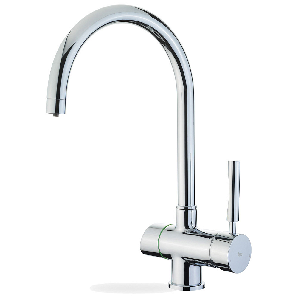 Смеситель с функцией фильтра рассчитан на 5800 литров — на один год. Два независимых канала подают разную воду: левый регулятор для фильтрованной воды, правый — для нефильтрованной. В картридж встроен ограничитель потока для экономии воды. Качественная фильтрация и удобство эксплуатации — преимущества этой модели.
