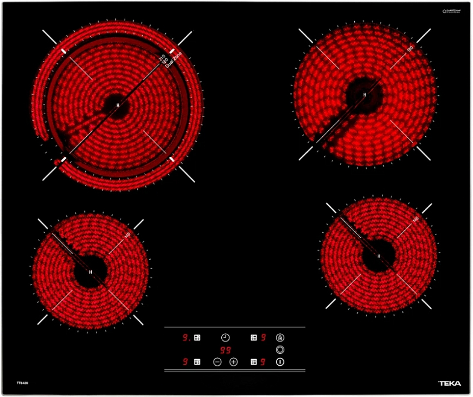 В варочную панель Тека TT 6420 встроена функция автоматического отключения. Она подразумевает, что по окончании приготовления пищи, панель автоматически отключится в соответствии с данными, введенными в программируемый таймер. Функция Iquick Boiling поможет быстро вскипятить воду без дополнительных энергозатрат. Система сенсоров контролирует мощность нагрева и поддерживает постоянную температуру.