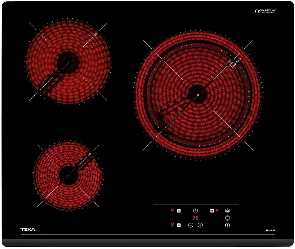 Для управления и отображения информации в Тека TZ 6315 встроен сенсорный дисплей, который загорается при включении и позволяет программировать работу легкими и скользящими движениями. Он достаточно прост в освоении, поэтому будет понятен абсолютно каждому пользователю. Вы можете не беспокоиться о том, что случайно обожжетесь, ведь индикаторы остаточного тепла самостоятельно определяют после завершения приготовления блюда, насколько сильно нагрета та или иная зона.